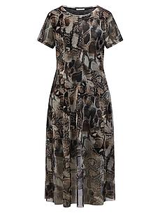 Mesh jurk van EFIXELLE met een pull-on model en halve mouwen. Een frisse interpretatie van de dierenprint in harmonieuze natuurlijke kleuren geeft deze jurk een verfijnde look en maakt hem echt uniek. De jurk heeft een licht uitlopende, relaxte pasvorm en is gemaakt van rekbare stof. Buitenstof 95% polyester, 5% elastaan. Voering 100% polyamide. Lengte ca. 120 cm. Deze mesh jurk is machinewasbaar. fijnwas tot 30°. chloorbleken niet mogelijk. koud strijken. chemische reiniging, veilig. drogen in de droger niet mogelijk. 36, 38, 40, 42, 44, 46, 48, 50, 52