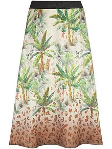 Midi rok van BASLER met contrasterende logo-elastische tailleband. Vrouwelijke A-lijn van het fijnste satijn met een trendy junglerandprint. Figuurnaden en een ritssluiting met fijne naad en lusknoop aan de achterkant zorgen voor een slank silhouet. Iedere rok is uniek. 100% polyester. Lengte ca. 75 cm. Deze midirok is machinewasbaar. wasbaar tot 30°. chloorbleken niet mogelijk. warm strijken. chemische reiniging. drogen in de droger niet mogelijk. 40, 42, 44, 46, 50, 52