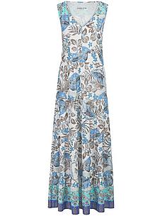 Mouwloze tricot jurk “Lone” van GREEN COTTON met V-hals. Figuurvullende zomerhit in een trendy look met een uitgebreid geplaatste, populaire bloemenprint en een geweldige rand in een nieuw kleurenschema. Casual en toch verleidelijk vrouwelijk met licht geruwde schouders, speelse plooien onder de buste en een lange, uitlopende rok met ruches. 100% katoen (biologisch), GOTS-gecertificeerd. Lengte ca. 135 cm. Deze jersey jurk is machinewasbaar. wasbaar tot 40°. chloorbleken niet mogelijk. warm strijken. niet chemisch te reinigen. drogen in de droger niet mogelijk. 36, 38, 40, 42, 44, 48