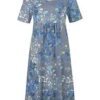 Mouwloze “Lone” tricot jurk van GREEN COTTON met V-hals. Verleidelijk vrouwelijk met een prachtige all-over print van palmbomen en aapjes. Met licht geruwde schouders, speelse plooitjes onder de buste en een lange, uitlopende rok met ruches. Elk stuk is uniek. 100% katoen (biologisch), GOTS-gecertificeerd. Lengte ca. 135 cm. Deze jersey jurk is machinewasbaar. wasbaar tot 40°. chloorbleken niet mogelijk. warm strijken. niet chemisch te reinigen. drogen in de droger niet mogelijk. 36, 38, 40, 42