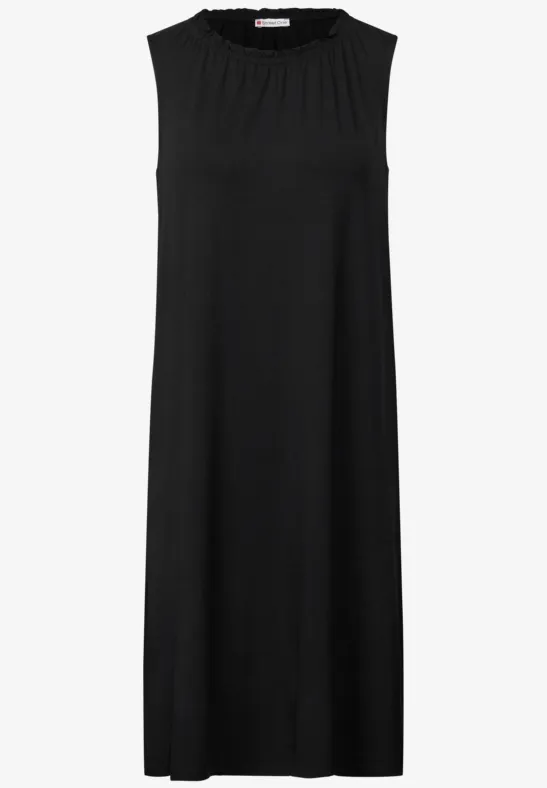 Deze mouwloze jurk van Street One voor dames heeft een cleane look in een effen kleur. De zachte viscosemix met stretch zorgt voor een comfortabele pasvorm en behaaglijk comfort. De klassieke ronde halslijn en de knielange lengte maken het de ideale metgezel voor zomerse looks.