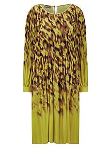 Plisséjurk van BASLER mode van topklasse in moderne powerkleuren. Flatteus voor het figuur. Van mooi soepele plissé van 100% polyester met neerwaarts uitlopende, blurry luipaardprint. Met een ronde hals met paspel, manchet met split aan de lange mouwen en gevoerd lijfje van 95% viscose, 5% elastan. Lengte ca. 105 cm. Machinewasbaar. fijnwas tot 30°. chloorbleken niet mogelijk. koud strijken. chemische reiniging, veilig. drogen in de droger niet mogelijk. 38, 40, 42, 44, 46, 48, 50