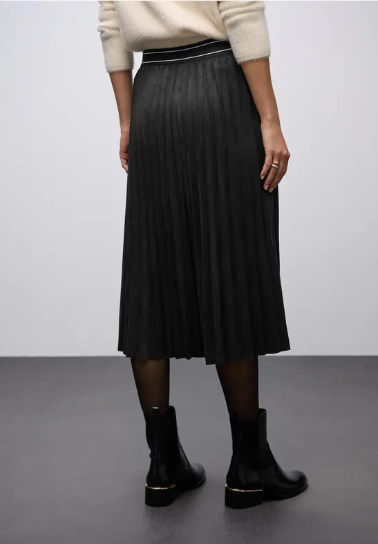 De plooirok van Street One voor dames is uitgevoerd in een zachte, vloeiende veloursstof en heeft een flatterende midilengte. De elastische tailleband zorgt voor een comfortabele pasvorm en een vrouwelijke drapering. Ideaal voor stijlvolle looks met een vleugje elegantie – zowel voor dagelijks gebruik als voor speciale gelegenheden.