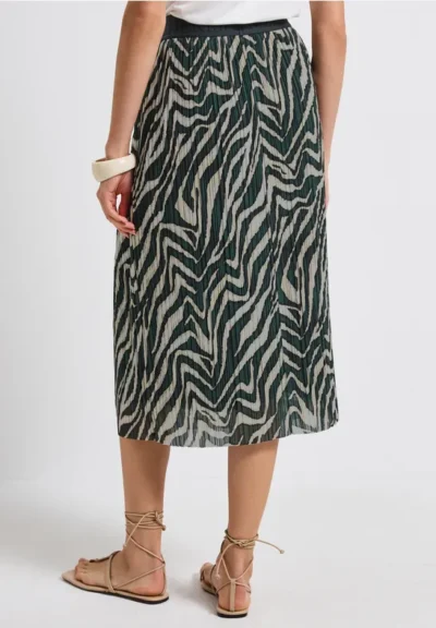 De plooirok van Street One voor dames heeft een grafisch patroon en zacht gedrapeerd netmateriaal. De rok heeft een midilengte en voegt een modieus accent toe, terwijl de elastische tailleband voor een comfortabele pasvorm zorgt. Een vrouwelijke rok met een vloeiend silhouet en een hoog draagcomfort – ideaal voor zomerse outfits.