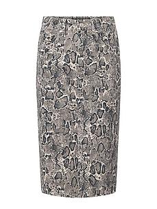 Rok van JOOP deze jeansrok in recht 5-pocketsmodel met een loopsplit voor is door de opvallende snake-print een modetopper Iedere rok is uniek. Zonder riem. Van 98% katoen, 2% elastan. Lengte ca. 67 cm. Machinewasbaar. fijnwas tot 30°. chloorbleken niet mogelijk. koud strijken. niet chemisch te reinigen. drogen in de droger niet mogelijk. 34, 36, 38