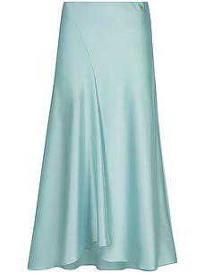 Rok van UTA RAASCH. Taillebandloos ontwerp met een comfortabele elastische tailleband aan de binnenkant. De ritssluiting in de zijnaad vergemakkelijkt het aan- en uittrekken. De hoge taille zorgt voor een comfortabele pasvorm. De gebogen naad met een plooi linksvoor benadrukt het vrouwelijke silhouet. Met zijn uitlopende stijl en asymmetrische zoom voegt de rok een aantrekkelijke dynamiek toe aan elke beweging. Een must-have voor elke garderobe Glanzend satijn van 97% polyester, 3% elastaan. De lengte is ongeveer 90 cm. Deze rok is machinewasbaar. fijnwas tot 30°. chloorbleken niet mogelijk. warm strijken. chemische reiniging. drogen in de droger niet mogelijk. 36, 38, 40, 42, 44, 46, 48