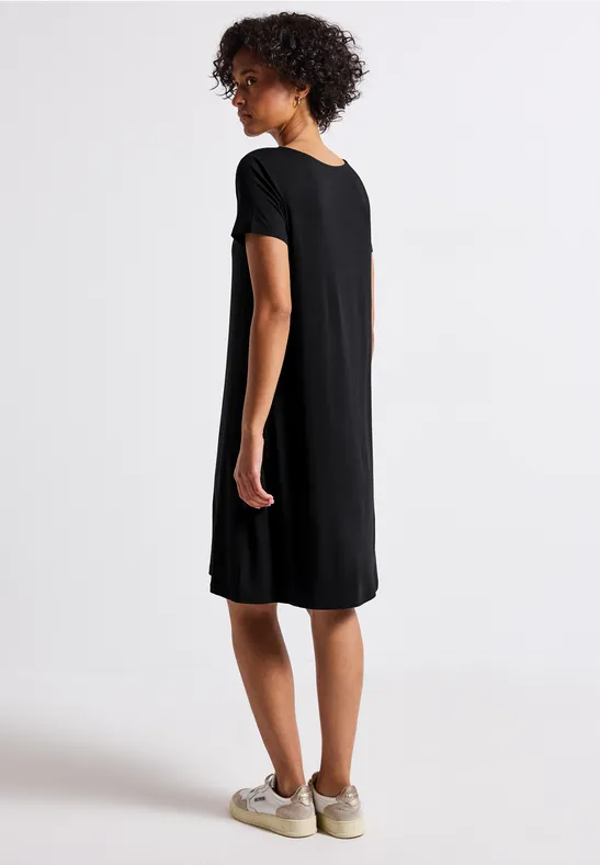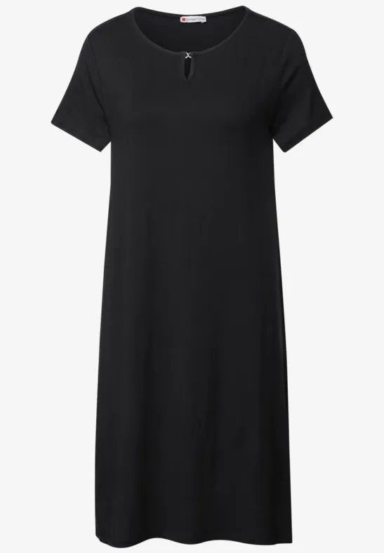 Deze Shirt jurk van Street One voor dames maakt indruk met zijn comfortabele jersey stof. De ronde halslijn met cut-out detail geeft de effen jurk een moderne twist, terwijl de stretchstof zorgt voor een comfortabele pasvorm. De korte lengte en luchtige mouwen maken hem ideaal voor warme dagen.