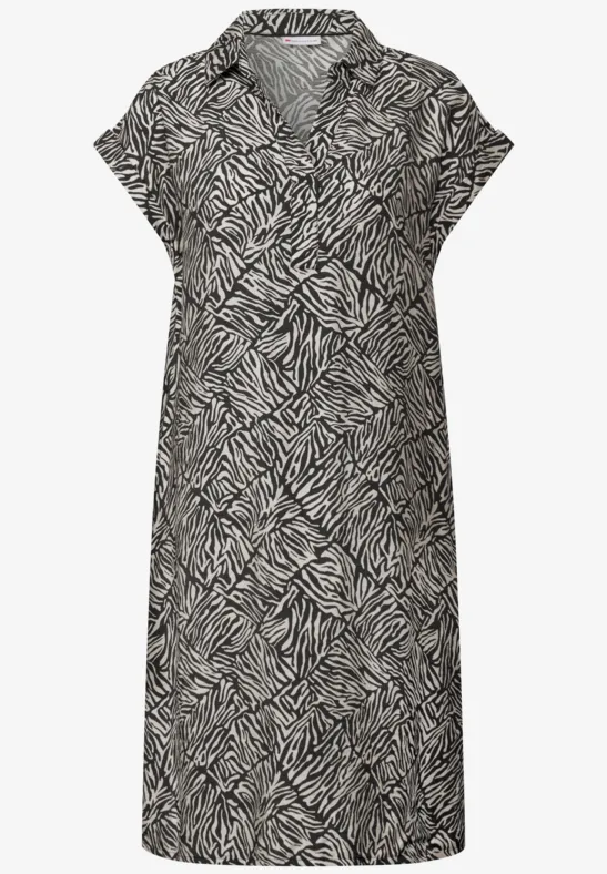Deze Street One Shirt jurk voor dames heeft een fris all-over patroon en een casual snit. De halsopening met split en de aangename viscosemix bieden je comfort en stijl tegelijk. Praktische zakken maken deze zomerjurk comfortabel en geschikt om elke dag te dragen.