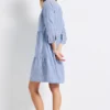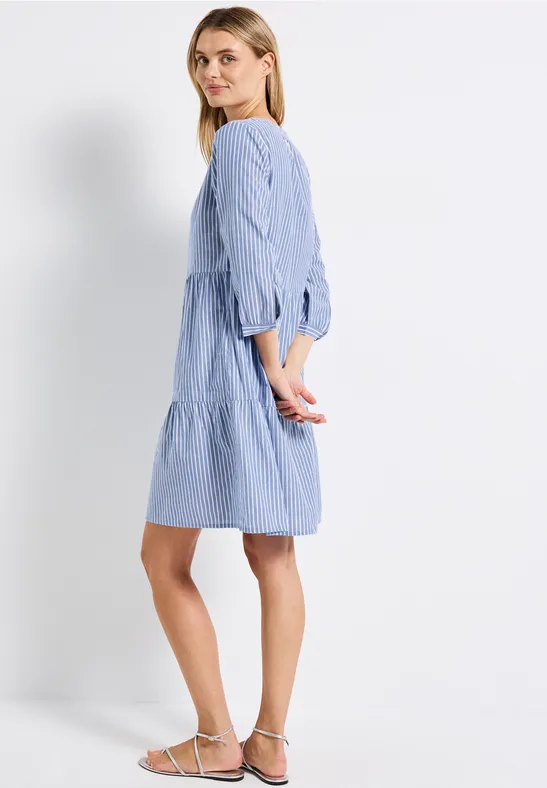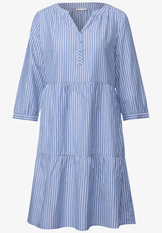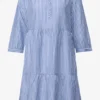 Deze tuniekjurk van Street One voor dames heeft glitterdetails in een gestreept patroon. De halsuitsnijding met knoopsluiting en 3/4 mouwen met volants geven je look een vrouwelijke lichtheid. De viscosemix voelt heerlijk zacht aan tegen de huid.