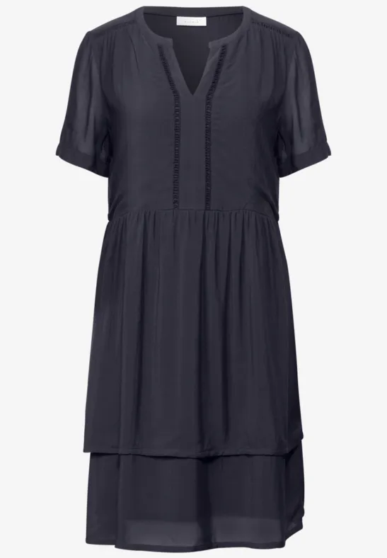 Deze knielange tuniekjurk van Street One Studio voor dames heeft decoratieve volants en een splitvormige halslijn die de vrouwelijke look benadrukt. Het model met korte mouwen is ideaal voor warme dagen. De comfortabele viscose-modaalmix zorgt voor een vloeiend gevoel.