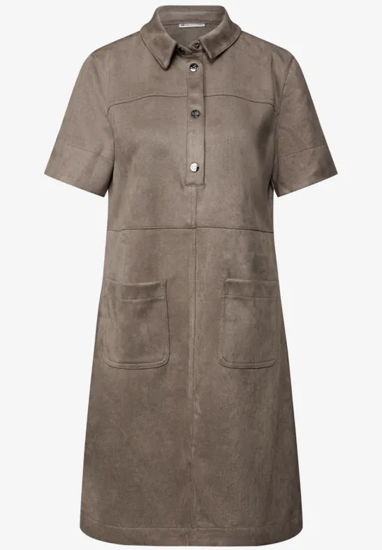 Deze Street One blousejurk voor dames zal je verblijden met de zachte veloursstof en het comfortabele gevoel. De overhemdkraag, korte mouwen en decoratieve knoopsluiting zorgen voor een vrouwelijke en toch casual look. Opgestikte zakken en de knielange pasvorm maken van deze jurk een veelzijdige stylingpartner voor elke dag.