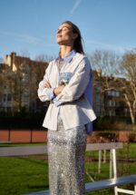 Een glinsterende kokerrok die elke stap laat fonkelen. De stretchstof en verborgen tailleband geven je die nonchalante preppy schwung, terwijl de pailletten je look meteen laten knallen. Combineer speels of chic, van casual tot party‑proof. Volledig gevoerd tot onder de knie voor een elegante, vloeiende lijn.