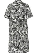 ANNA AURA jurk met een korte reverskraag en 3/4 mouwen die kunnen worden opgerold. Los model met een knoopsluiting over de hele lengte en steekzakken. De kleurrijke zebraprint op hoogwaardige, zomerse stof maakt elke jurk uniek. Kan met of zonder ceintuur worden gedragen. 60% katoen, 40% linnen. Lengte in maat 42 ca. 120 cm. Deze jurk is machinewasbaar. fijnwas tot 30°. chloorbleken niet mogelijk. warm strijken. chemische reiniging. drogen in de droger niet mogelijk. 40, 42, 44, 46, 48, 50, 52, 54, 56