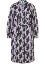 ANNA AURA jurk met 1/1 mouwen die kunnen worden opgerold. Fashionster in nieuwe kleuren voor de stad of een evenement De fascinerende print van gestileerde bladmotieven ziet er bijzonder elegant uit op de vloeiende, fijne stof. Losjes vallend overhemd met klepzakken op de borst en knoopsluiting over de hele lengte – met de strikceintuur kun je de jurk aan je figuur aanpassen. Elk model is uniek. 100% viscose. LENZING™ ECOVERO™ viscose is een geregenereerde cellulosevezel. Lengte in maat 42 ca. 140 cm. Deze jurk is machinewasbaar. fijnwas tot 30°. chloorbleken niet mogelijk. warm strijken. chemische reiniging. drogen in de droger niet mogelijk. 40, 42, 44, 46, 48, 50, 52, 54, 56