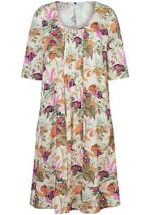 Jurk van ANNA AURA met 3/4-mouwen die opgerold kunnen worden. Losjes vallend model van vloeiende, zachte viscosestof met een diepe ronde halslijn, plooien aan de voorkant en 2 steekzakken. De prachtige bloemenprint maakt elke jurk uniek. 100% viscose. Gecertificeerd volgens Standard 100 van OEKO-TEX®. Lengte in maat 42 ca. 110 cm. Deze jurk is machinewasbaar. fijnwas tot 30°. chloorbleken niet mogelijk. warm strijken. chemische reiniging, veilig. drogen in de droger niet mogelijk. 42, 44, 46, 48, 50, 52