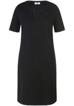 Aansluitende tricot jurk van ANNA AURA met een V-opening bij de ronde hals en 1/2 mouwen. Ongecompliceerd, kreukvrij en zeer comfortabel van strak gebreide structuurjersey. De perfecte jurk voor elke dag, voor op reis en kan ook passend worden gestyled voor een evenement. 76% katoen, 22% polyamide, 2% elastaan. Lengte in maat 42 ca. 100 cm. Deze tricot jurk is machinewasbaar. fijnwas tot 30°. chloorbleken niet mogelijk. warm strijken. chemische reiniging, veilig. drogen in de droger niet mogelijk. 40, 42, 44, 46, 52