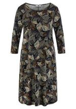 Jerseyjurk van ANNA AURA zonder sluiting. Met ronde hals en 3/4-mouwen. Flatteus voor het figuur en absoluut tijdloos in ruimvallende stijl met zakken in de naar voren geplaatste zijnaden. De exclusieve print maakt iedere jurk uniek. Van 95% viscose, 5% elastan. LENZING™ ECOVERO™-viscose is een geregenereerde cellulosevezel. Lengte in maat 42 ca. 100 cm. Machinewasbaar. fijnwas tot 30°. chloorbleken niet mogelijk. koud strijken. chemische reiniging. drogen in de droger niet mogelijk. 40, 42, 44, 48, 52
