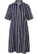 Jurk van DAY.LIKE met een in de breedte gestreepte volant aan de 3/4-mouwen. Summer in the city Het luchtige model, de soepele stof en afkledende strepen in zonnige kleuren maken van deze jurk een musthave voor de mooiste dagen van het jaar. Ruimvallend en luchtig in losjes vallende overhemdstijl met doorknoopsluiting, een plooi achter, naadzakken en zijsplitjes. Met of zonder de bindceintuur te dragen. Van 100% lyocell. Lengte ca. 120 cm. Machinewasbaar. wasbaar tot 30°. chloorbleken niet mogelijk. koud strijken. chemische reiniging. drogen in de droger niet mogelijk. 36, 38, 40, 42, 44, 46, 48