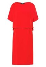 Jurk van FADENMEISTER BERLIN met boothals, 1/2 mouwen en steekzakken. Vrouwelijk chic en hypermoderne verfijning – een jurk die zich aanpast aan elke dresscode De meesterlijke snit met overlappende top in gelaagde look flatteert het figuur. Ritssluiting met fijne naad en split aan de achterkant. 100% Polyester. Voering 67% acetaat, 33% polyester. Lengte ca. 110 cm. Deze jurk is wasbaar in de machine. fijnwas tot 30°. chloorbleken niet mogelijk. koud strijken. chemische reiniging. drogen in de droger niet mogelijk. 36, 40, 42