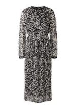 Jurk van OUI met lange mouwen en korte knoopsluiting. Toptrendy, met bijzonder mooi dierendessin. Ruimvallend model van iets transparant mesh met gladde mouwen en body met plisséplooitjes en open rand bij de zoom. Met de bindceintuur kunt u de jurk ook aansluitend dragen. Elke jurk is uniek. Buitenkant en bodyvoering van 100% polyester. Lengte ca. 132 cm. Machinewasbaar. fijnwas tot 30°. chloorbleken niet mogelijk. koud strijken. chemische reiniging, veilig. drogen in de droger niet mogelijk. 36, 40, 42