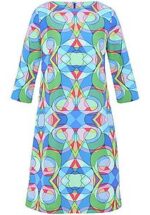 Jerseyjurk van PAGANNE met 3/4 mouwen. Nauwsluitend en comfortabel in wijd uitlopend model met boothals en ritssluiting aan de achterkant. De exclusieve grafische print is ontworpen door NO Design in New York. 88% polyester, 12% elastaan. Lengte ca. 100 cm. Deze jersey jurk is wasbaar in de machine. wasbaar tot 30°. chloorbleken niet mogelijk. koud strijken. chemische reiniging. drogen in de droger niet mogelijk. 36, 38, 40, 42