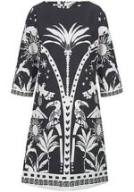 PAGANNE jurk met een boothals en 3/4-mouwen. Figuurvullend model met een ritssluiting achter en zakken in de zijnaden. Opvallend aantrekkelijk Een extravagante blikvanger met een zorgvuldig geplaatst, symmetrisch zwart-wit dessin met exotische motieven met randen aan de uiteinden. 88% polyester, 12% elastaan. Lengte ca. 100 cm. Deze jurk is machinewasbaar. wasbaar tot 30°. chloorbleken niet mogelijk. koud strijken. chemische reiniging. drogen in de droger niet mogelijk. 36, 38, 40, 42