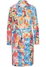 PAGANNE jurk met een klein splitje op de 1/1 mouw. Overhemdmodel met knoopsluiting over de hele lengte en zakken in de zijnaden. Kan met of zonder ceintuur worden gedragen. Vrolijke, kleurrijke bloemmotieven zorgen voor een goed humeur en maken elke jurk uniek. 88% polyester, 12% elastaan. Lengte ca. 100 cm. Deze jurk is machinewasbaar. wasbaar tot 30°. chloorbleken niet mogelijk. koud strijken. chemische reiniging. drogen in de droger niet mogelijk. 38, 40, 42, 44, 46, 48