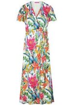 MARCEL OSTERTAG jurk met korte volantmouwen. Een modedroom van fascinerende schoonheid met een kleurrijke bloemenprint op elegant gedrapeerde stof, waardoor elke jurk uniek is. Vrouwelijke overslagjurk in een eigentijdse maxilengte met een diepe, overgesneden V-hals en een smalle band waarmee je deze stijl los of nauwsluitend kunt dragen. 97% viscose, 3% elastaan. Gecertificeerd volgens Standard 100 van OEKO-TEX®. Lengte ca. 130 cm. Deze jurk is machinewasbaar. fijnwas tot 30°. chloorbleken niet mogelijk. warm strijken. chemische reiniging, veilig. drogen in de droger niet mogelijk. 36, 40, 42, 44, 46