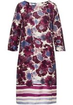 Jurk van PETER HAHN met ronde hals en 3/4-mouwen. Fashionstar in elegante look. Kokermodel van mooi vallende, bijzonder hoogwaardige stof met een mooie glans. De bijzondere bloemenprint met gestreept randdessin onderlangs maakt iedere jurk uniek. Met ritssluiting achter en steekzakken opzij. 53% cupro, 47% viscose. Gecertificeerd volgens Standard 100 by OEKO-TEX®. LENZING™ ECOVERO™ viscose is een geregenereerde cellulosevezel. Lengte ca. 100 cm. Machinewasbaar. fijnwas tot 30°. chloorbleken niet mogelijk. warm strijken. chemische reiniging. drogen in de droger niet mogelijk. 36, 38, 40, 42, 44