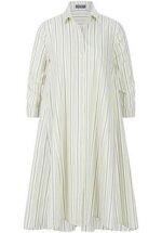 Jurk met overhemdkraag van MYBC. Met plooitjes door een ingewerkt elastiek achter aan de 3/4-mouwen. Een musthave voor uw zomergarderobe Rondom heerlijk wijd en luchtig met doorknoopsluiting, zakken in de zijnaden en een kortere zoom voor. Het afkledende streepdessin maakt iedere jurk uniek. 71% katoen, 26% polyester, 3% elastan. Lengte ca. 110 cm. Machinewasbaar. fijnwas tot 30°. chloorbleken niet mogelijk. warm strijken. chemische reiniging. drogen in de droger niet mogelijk. 36, 38, 40, 42