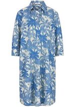 Jurk met overhemdkraag van PETER HAHN. Zonder sluiting. Met een korte knoopsluiting en 3/4-mouwen. De perfecte zomerjurk voor elk figuur Hoogwaardig, gestructureerd, zuiver katoen met een palmenprint in koele blauwtinten, waardoor iedere jurk uniek is. Losjes vallend en aangenaam luchtig, met een wijdte verlenende plooi voor en achter en met zakken in de zijnaden. Van 100% katoen. Gecertificeerd volgens Standard 100 by OEKO-TEX®. Lengte ca. 100 cm. Machinewasbaar. fijnwas tot 30°. chloorbleken niet mogelijk. warm strijken. chemische reiniging, veilig. drogen in de droger niet mogelijk. 36, 38, 40, 42, 44, 46, 48, 50, 52