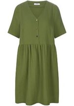 Jurk van PETER HAHN zonder sluiting. Met korte, blinde knoopsluiting en korte mouwen. Voor elk figuur, elke stijl en de mooiste dagen van het jaar Het linnen weefsel met de voor dit materiaal kenmerkende garenverdikkingen zorgt bij zomerse temperaturen voor een verkoelend effect. Ook de ruimvallende, losjes vallende snit met biezen, plooitjes bij de mouwinzetten, ajourborduursel bij de zoom en steekzakken opzij draagt bij aan uw comfort. 100% linnen. Lengte ca. 100 cm. Machinewasbaar. fijnwas tot 30°. chloorbleken niet mogelijk. warm strijken. chemische reiniging. drogen in de droger niet mogelijk. 38, 42