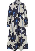 Jurk van OUI zonder sluiting. Met taillediepe knoopsluiting en lange mouwen. Heerlijk comfortabel, luchtig en opvallend mooi, van hoogwaardig katoen met een print van gestileerde reuzenbloemen, die iedere jurk uniek maakt. Aangezette rok met rijgkoord in de taille en strikbandjes opzij om de wijdte te verstellen, met wijd uitlopende zoomwijdte. 100% katoen. Lengte ca. 123 cm. Machinewasbaar. fijnwas tot 30°. chloorbleken niet mogelijk. koud strijken. chemische reiniging, veilig. drogen in de droger niet mogelijk. 36, 38, 42
