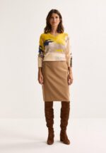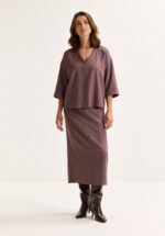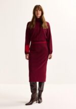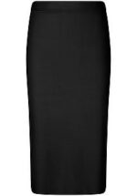 Deze kuitlange kokerrok in ultrazacht tricot omhelst je silhouet met finesse. De elastische tailleband zorgt voor een flatterende pasvorm die je rondingen accentueert en je figuur optisch verlengt. De contrasterende bies aan de taille geeft een subtiele, grafische touch. En goed nieuws voor de gevoelige huid: deze rok bevat geen wol, enkel comfort.