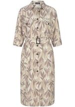 Kuitlange overhemdjurk van BASLER met manchetten aan de 3/4-mouwen, bladprint, knopen van imitatiehoorn om te sluiten, opgezette borstzakken met kleppen en knopen en praktische naadzakken op de heup. De tailleriem met imitatiehoornsluiting in lusjes brengt de jurk in vorm. De brede stolpplooi op het rugpand en de afgeronde zijsplitten op de iets langere rug zorgen voor extra comfort. Elke jurk is uniek. 93% Lyocell, 7% Linnen. Lengte ca. 120 cm. Deze overhemdjurk is machinewasbaar. fijnwas tot 30°. chloorbleken niet mogelijk. warm strijken. chemische reiniging. drogen in de droger niet mogelijk. 46, 48, 50, 52
