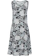 Mouwloze jersey jurk ‘Julie’ van GREEN COTTON de accentuerende snit met parelmoeren knopen bij de ronde hals en een zomerfrisse paisley-bloemenprint in trendy kleurharmonie zorgt ook op warme dagen voor een aangenaam draagcomfort. Elke jurk is uniek. 100% katoen (bio), GOTS-gecertificeerd. Lengte ca. 105 cm. Machinewasbaar. wasbaar tot 40°. chloorbleken niet mogelijk. warm strijken. niet chemisch te reinigen. drogen in de droger niet mogelijk. 36, 38