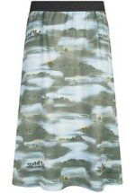 Midirok van BASLER met contrastkleurige elastische band met logo. Elegante A-lijn van bijzonder fijn satijn met trendy landschapsprint voor een modieuze look. Elk exemplaar is uniek. Met figuurnaden en een naaddunne ritssluiting achter voor een smal silhouet. Hoog draagcomfort. Van 100% polyester. Lengte ca. 75 cm. Machinewasbaar. wasbaar tot 30°. chloorbleken niet mogelijk. warm strijken. chemische reiniging. drogen in de droger niet mogelijk. 36, 38, 40, 42, 44, 46, 48, 50, 52