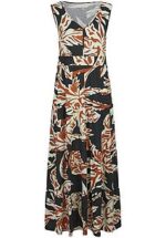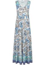 Mouwloze tricot jurk “Lone” van GREEN COTTON met V-hals. Figuurvullende zomerhit in een trendy look met een uitgebreid geplaatste, populaire bloemenprint en een geweldige rand in een nieuw kleurenschema. Casual en toch verleidelijk vrouwelijk met licht geruwde schouders, speelse plooien onder de buste en een lange, uitlopende rok met ruches. 100% katoen (biologisch), GOTS-gecertificeerd. Lengte ca. 135 cm. Deze jersey jurk is machinewasbaar. wasbaar tot 40°. chloorbleken niet mogelijk. warm strijken. niet chemisch te reinigen. drogen in de droger niet mogelijk. 36, 38, 40, 42, 44, 48