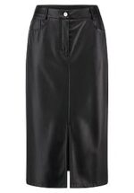 Midi-kokerrok van BASLER in smal 5-pocketsmodel van zacht imitatieleer van 100% polyester met 100% polyurethaan-coating. Voor met een split voor meer bewegingsvrijheid. Voering van 97% polyester, 3% elastan. Lengte ca. 78 cm. Machinewasbaar. fijnwas tot 30°. chloorbleken niet mogelijk. niet strijken. niet chemisch te reinigen. drogen in de droger niet mogelijk. 36, 38, 40, 42, 44, 48, 52