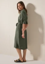 De midi-jurk van CECIL voor dames is een elegante blousejurk met korte mouwen, een klassieke kraag en een knooppas voor een stijlvolle look. Met lussen aan de zijkanten en een strikceintuur benadrukt het de taille, terwijl steekzakken en splitten in de zoom zorgen voor functionaliteit en bewegingsvrijheid. Deze jurk is gemakkelijk te onderhouden en strijkvrij. Hij is de perfecte keuze voor een moeiteloze maar geraffineerde look.