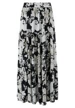 Rok van UTA RAASCH. Deze maxi maakt indruk met zijn drie lagen die worden geaccentueerd door met liefde gemaakte ruches onder de tailleband en naden. De voorgevormde tailleband zorgt voor een comfortabele pasvorm. De knoopsluiting aan de zijkant is een prachtig detail. 100% viscose. Lengte ca. 95 cm. Deze rok is machinewasbaar. fijnwas tot 30°. chloorbleken niet mogelijk. warm strijken. chemische reiniging, veilig. drogen in de droger niet mogelijk. 36, 38, 40, 42, 44, 46, 48