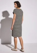 De gestreepte jurk van Street One voor dames maakt indruk met zijn luchtige midi-snit en zomerse luchtigheid. De ronde halslijn, korte mouwen en zijsplitten creëren een ontspannen silhouet. De zachte viscosemix met stretch garandeert een comfortabel gevoel – perfect voor warme dagen in stijl.