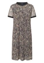 Jersey jurk van JOOP met korte mouwen. Trendy en heerlijk comfortabel, van transparant, superelastisch mesh van 95% polyester, 5% elastan met snake-print. De gefixeerde, gevoerde jurk van 100% polyester maakt dit model ondoorzichtig. Iedere jurk is uniek. Lengte ca. 97 cm. Machinewasbaar. fijnwas tot 30°. chloorbleken niet mogelijk. koud strijken. niet chemisch te reinigen. drogen in de droger niet mogelijk. 36, 38, 40, 42, 44