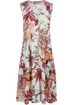 Jersey jurk “Ivy” van GREEN COTTON een verfrissende zomerster met een weelderig bloemendessin en een hoge feelgoodfactor – vrouwelijk, ongecompliceerd en geschikt voor naar kantoor. In een uitlopende A-lijn met een eigentijdse boothals, split aan de 3/4-mouwen en nonchalante steekzakken. 100% katoen (biologisch), GOTS-gecertificeerd. Lengte ca. 97 cm. Deze jersey jurk is machinewasbaar. wasbaar tot 40°. chloorbleken niet mogelijk. warm strijken. niet chemisch te reinigen. drogen in de droger niet mogelijk. 36, 38, 40, 42, 44, 46, 48, 50, 52