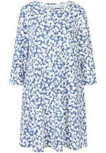 Jersey jurk “Emma” van GREEN COTTON ons best verkochte ontwerp nu in het blauw Of je nu op kantoor bent of aan het winkelen – deze frisse, comfortabele favoriet met zijn expressieve, kunstig geplaatste bloemenprint en effectieve boord zal overal de aandacht trekken. Vrouwelijk en modern, in een los, iets korter model met een wijde ronde halslijn, 3/4 mouwen met ruches en een decoratieve band aan de manchetten en nonchalante steekzakken.100% katoen (organic), GOTS-gecertificeerd. Lengte ca. 97 cm. Deze jersey jurk is machinewasbaar. wasbaar tot 40°. chloorbleken niet mogelijk. warm strijken. niet chemisch te reinigen. drogen in de droger niet mogelijk. 36, 38, 40, 42, 44, 46, 48, 50