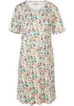 Jersey jurk ‘Louise’ van GREEN COTTON rondom gedessineerd met heerlijke bloem- en paisleyimpressies in harmonieuze zomerkleuren. Aangename comfortkwaliteit in losse, iets kortere stijl met een ronde hals, korte mouwen en flatteuze diagonaal verlopende naden met geïntegreerde zakken. 100% katoen (bio), GOTS-gecertificeerd. Lengte ca. 98 cm. Machinewasbaar. wasbaar tot 40°. chloorbleken niet mogelijk. warm strijken. niet chemisch te reinigen. drogen in de droger niet mogelijk. 36, 38, 40, 42, 44, 46, 48, 50, 52