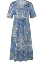 Jersey jurk van PETER HAHN zonder sluiting. Met 3/4-mouwen. Heerlijk comfortabel, flatteus en modern met diepgetinte bloemetjesprint Losjes vallende stijl met plooitjes bij de deelnaad voor en een iets uitlopende zoom. LENZING™ ECOVERO™-viscose is een geregenereerde cellulosevezel. Elke jurk is uniek. Lengte ca. 96 cm. Het meest pure draagplezier van zachte, huidvriendelijke jersey van 95% viscose, 5% elastan. Machinewasbaar. fijnwas tot 30°. chloorbleken niet mogelijk. koud strijken. chemische reiniging. drogen in de droger niet mogelijk. 44, 46, 48, 50, 52