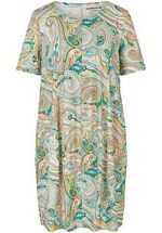 Jersey jurk “Oda” van GREEN COTTON De casual O-vorm met ronde hals, 1/2 mouwen en comfortabele steekzakken overtuigt niet alleen door de heerlijke draageigenschappen, maar ook door de trendy paisleyprint in zomerse kleuren. Elke jurk is uniek. 100% katoen (biologisch), GOTS-gecertificeerd. Lengte ca. 95 cm. Deze jersey jurk is machinewasbaar. wasbaar tot 40°. chloorbleken niet mogelijk. warm strijken. niet chemisch te reinigen. drogen in de droger niet mogelijk. 36, 38, 40, 42, 44, 46, 48, 50, 52