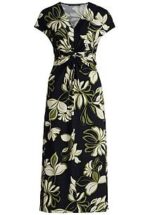 Jersey jurk van BETTY BARCLAY. Zonder sluiting, met V-hals en aangeknipte mouwen. Heerlijk comfortabel, flatteus voor het figuur en bijzonder elegant Van kreukvrije jersey van 95% polyester, 5% elastan met knoopdetail voor en uitlopende zoom. Het opvallende bloemdessin maakt iedere jurk uniek. Lengte ca. 125 cm. Machinewasbaar. fijnwas tot 30°. chloorbleken niet mogelijk. koud strijken. niet chemisch te reinigen. drogen in de droger niet mogelijk. 36, 38, 40, 42