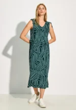 Deze knielange jersey jurk van Street One voor dames is een casual allrounder voor elke dag. De viscosemix met stretch zorgt voor een zacht gevoel, terwijl de ronde halslijn, korte mouwen en taille met tunnelkoord naar wens kunnen worden aangepast. Zijzakken ronden de sportieve, vrouwelijke look af.